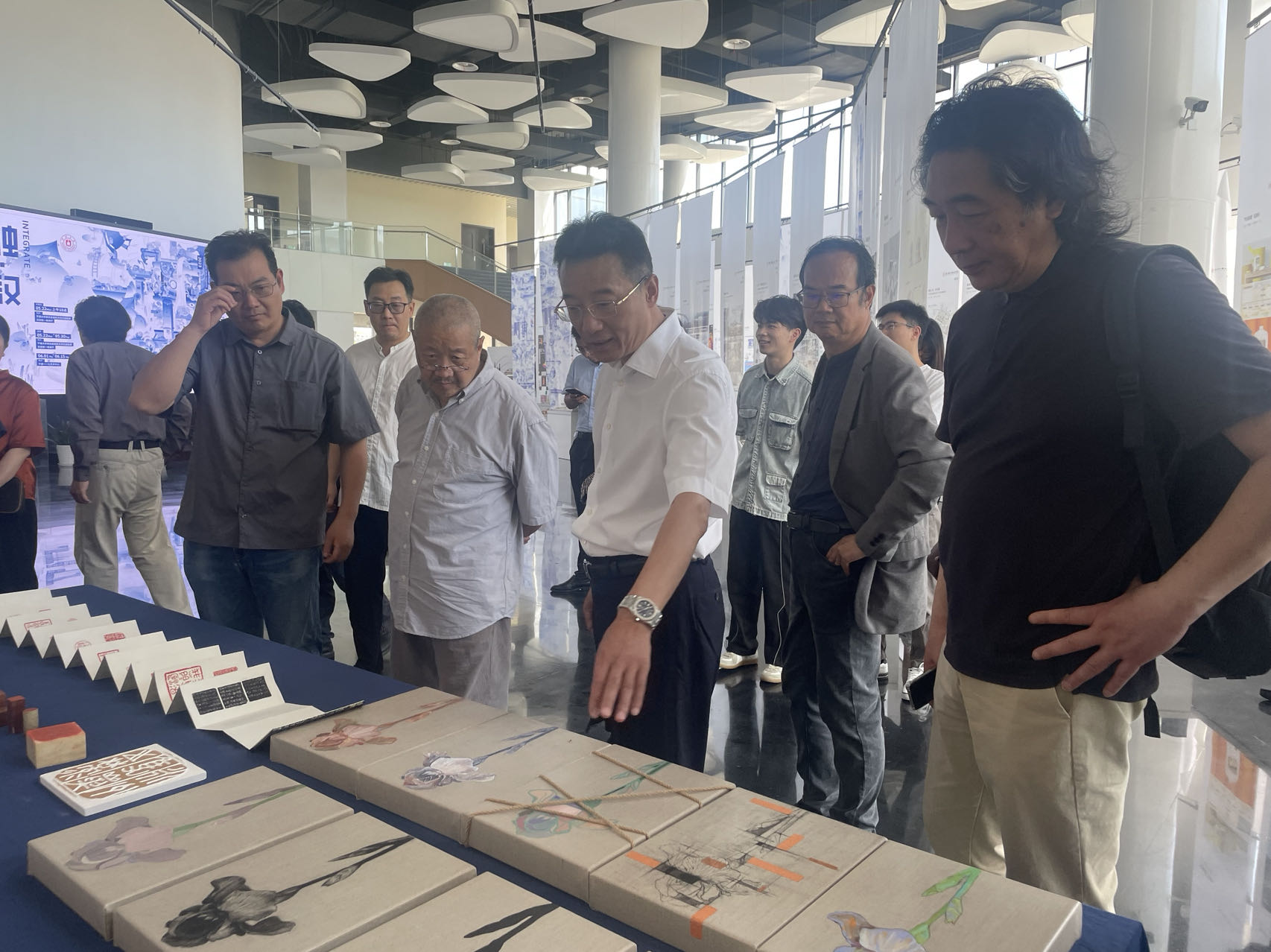 朱书记欣赏美术系学生作品
