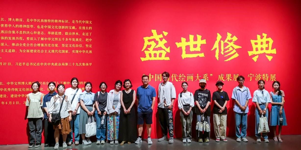 美术学(师范)专业大一、大二学生以及美术研究生共16名学生赴宁波美术馆参加“盛世修典——‘中国历代绘画大系’成果展·宁波特展”的志愿者讲解培训与考核。