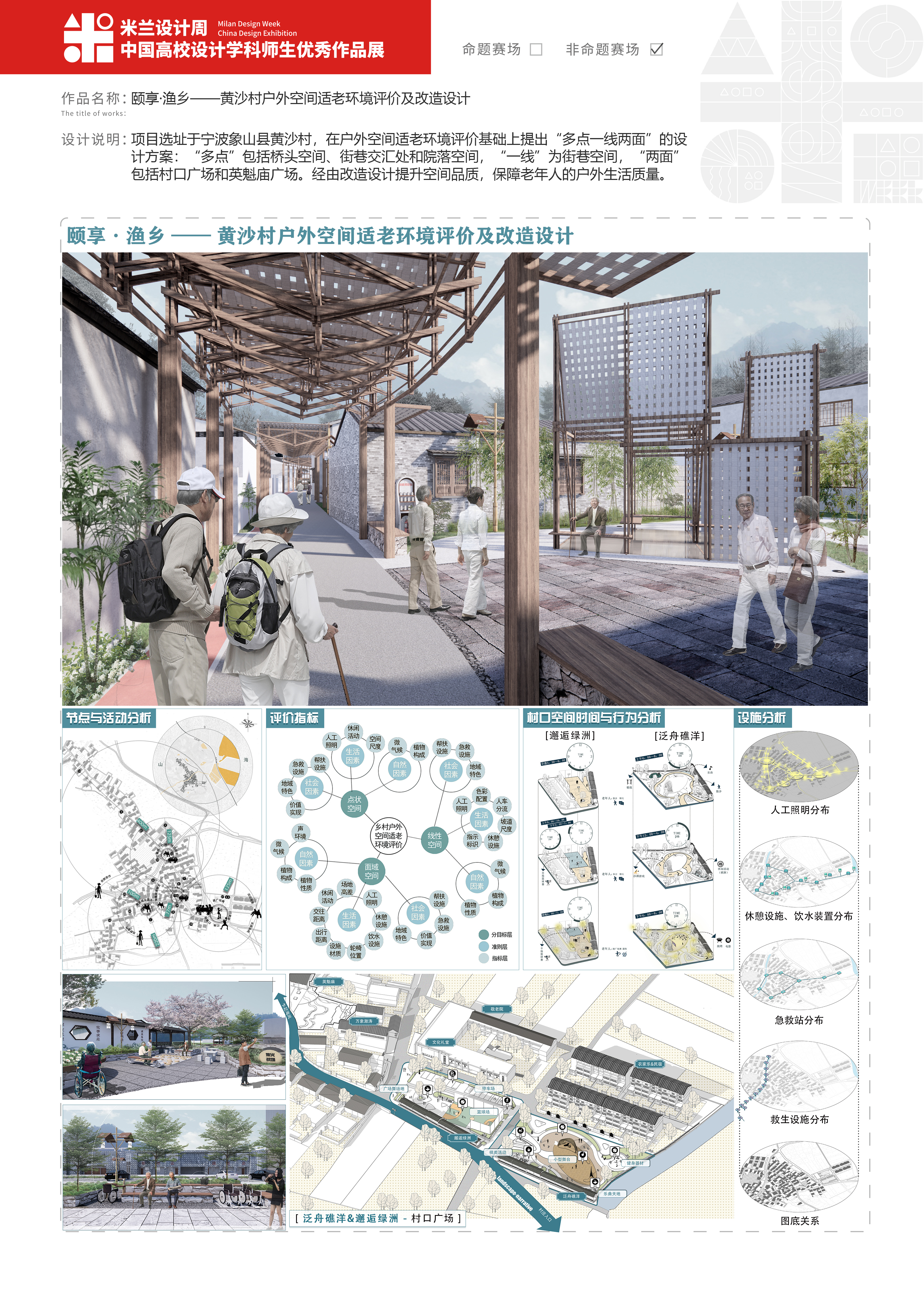 近日,米兰设计周2023年中国高校设计学科师生优秀作品展获奖名单公布。我院在各高校的激烈角逐中获得了亮眼成绩,共斩获各类奖项54个,其中,国家级一等奖2项,二等奖7项,三等奖12项;省级一等奖4项,二等奖17项,三等奖12项。由我院陶锋、包伊玲老师指导,张津豪、唐洁创作的《颐享·渔乡——黄沙村户外空间适老环境评价及改造设计》,王世学、金壮老师指导,周梦欣、孙绎然、屠慧楠创作的《“四方”集市》在全国总决赛中获得了一等奖的好成绩。