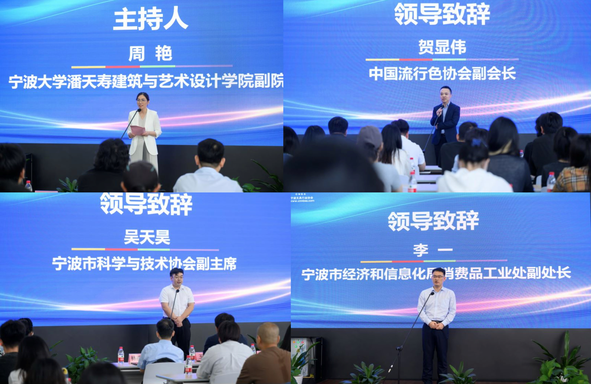 周艳副院长主持,中国流行色协会副会长贺显伟、宁波市科学技术协会副主席吴天昊、宁波市经济和信息化局消费品工业处副处长李一分别致辞。