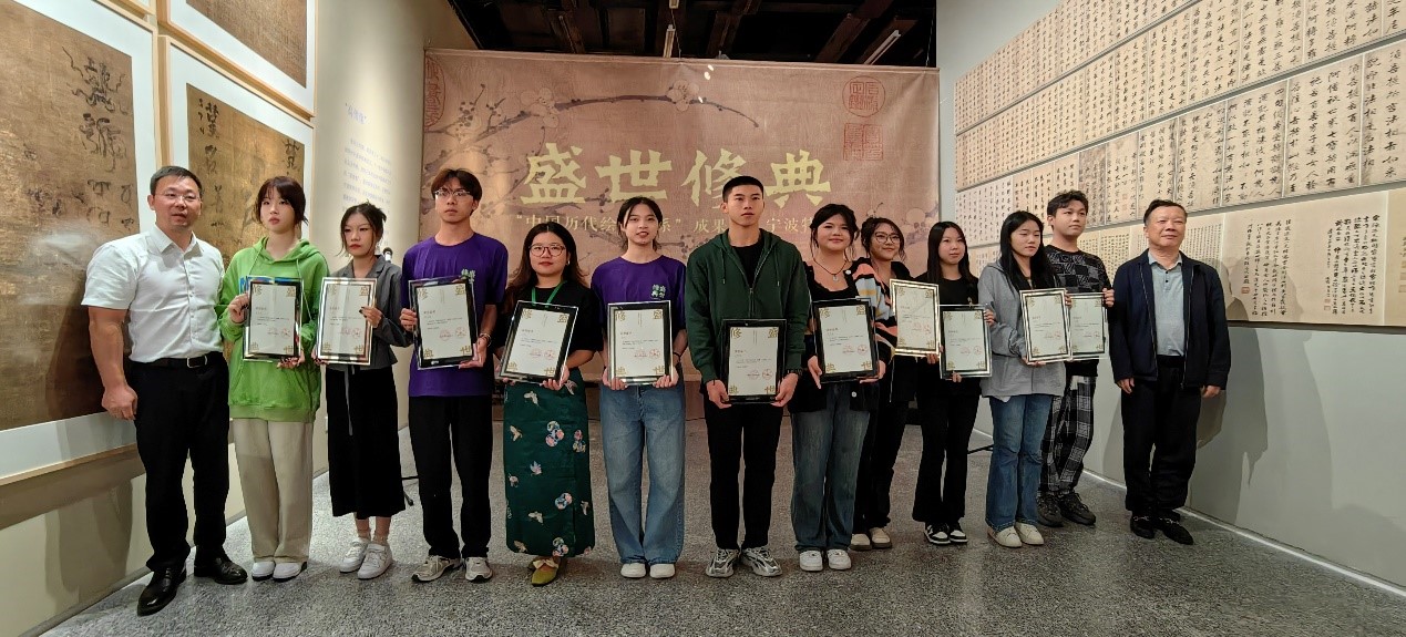 美术系的师生代表,共同参加了“盛世修典”特展颁奖仪式。在颁奖仪式上,宁波市政协原副主席、宁波中华文化促进会会长郁伟年,中共宁波市委宣传部副部长陈印为优秀志愿者颁奖。