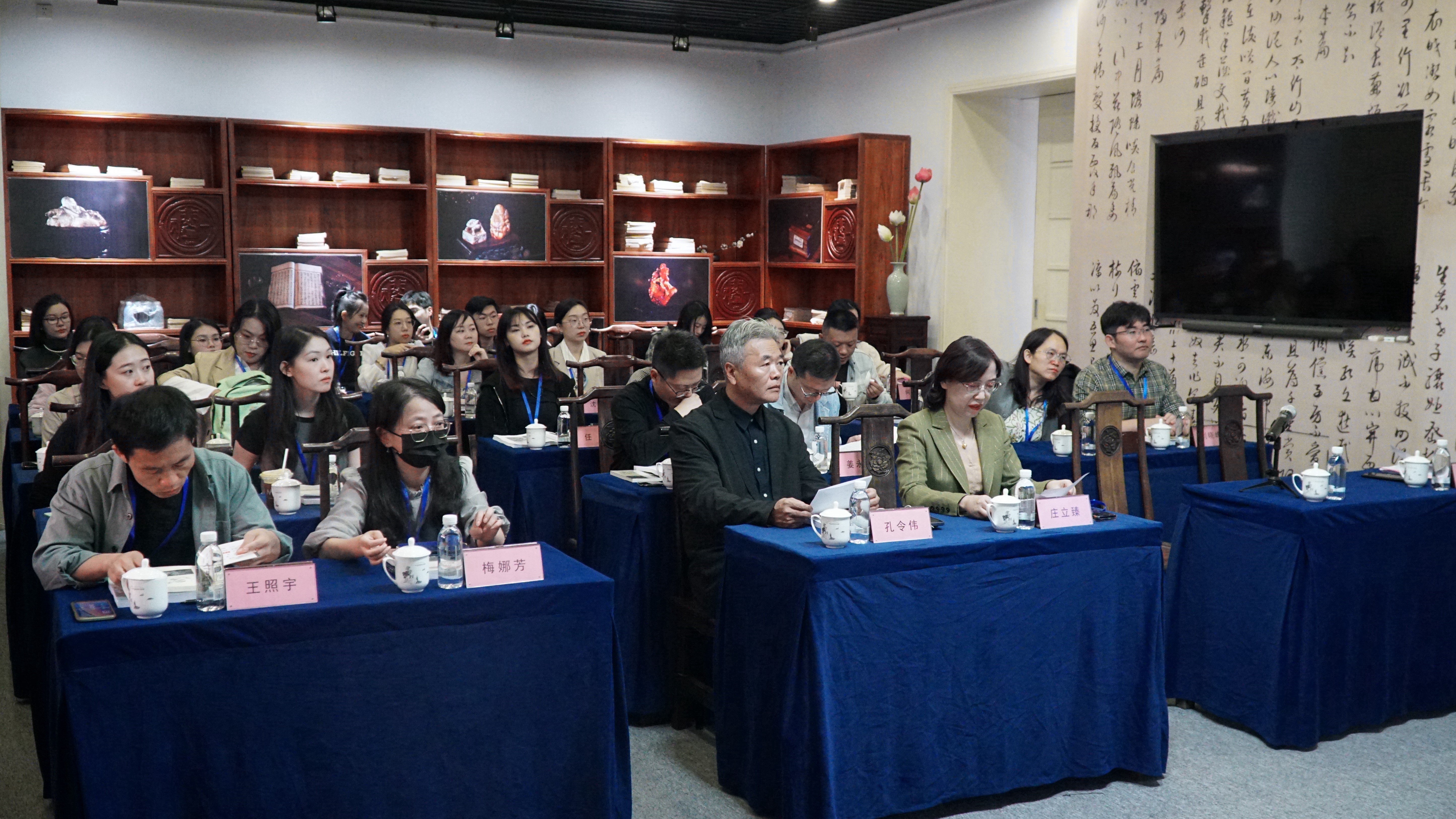 、苏州大学、河南大学、宁夏大学、江苏大学及天一阁博物院的三十余位学者与研究生参会,就浙江山水实景入画、浙江地域文化在画作中的体现等议题展开了热烈的交流与探讨。研讨会以“汇报+交流”相结合的形式进行。