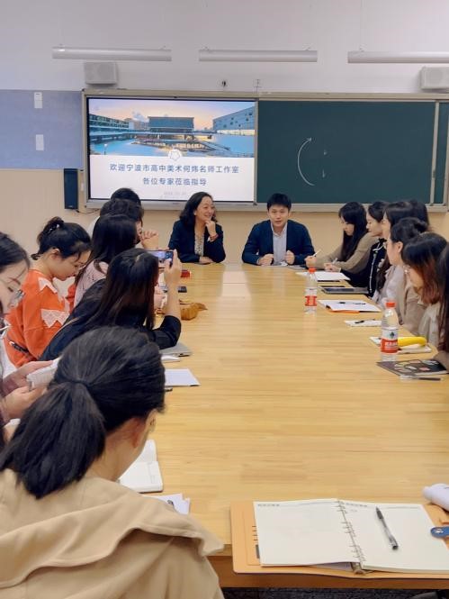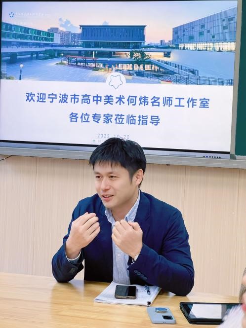 课堂教学结束后,由名师工作室的何炜老师组织教学研讨活动。参与活动的教师与学生团队共同参与评课,大家都能毫无保留的把对两节课的认识、看法、见解、收获等进行表达,从不同的侧面对两节课进行了分析评价。这对于促进全体教师的专业成长,解决教学中发现的问题具有重要的价值。最后由何炜老师做出总结,何老师对示范课例和经验交流都给予了充分的肯定,并提出美术教师课堂示范方法和建议。何老师对青年美术教师专业发展也给出一些真知灼见,鼓励青年教师要不断学习和成长,多积淀、多研究,多锻炼,多学习,通过教研活动提高自己的专业素养和教学技能。