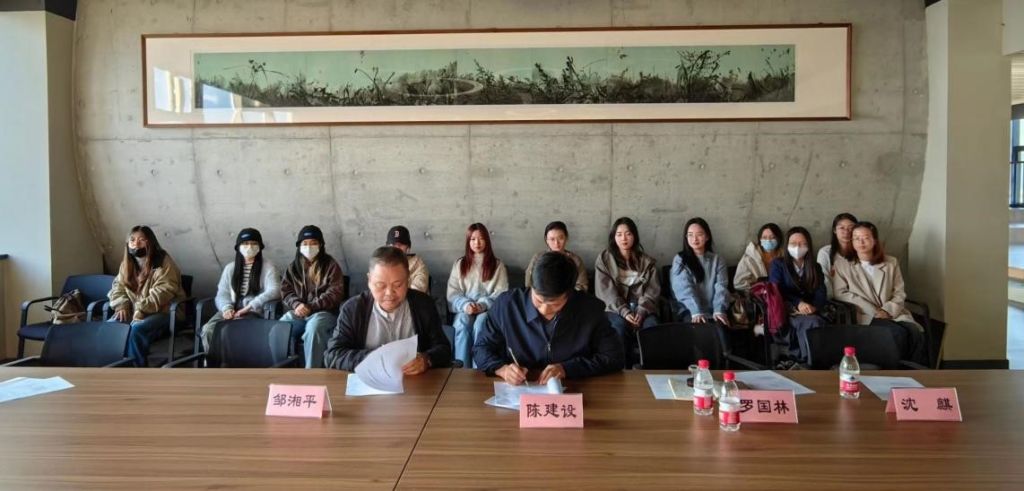 并参加签约仪式。院长徐仲偶、研究生负责人王卓然、美术系系主任陈晟、副主任刘利波、学科负责人梅娜芳及书画硕士生导师邹湘平等出席本次签约仪式。仪式由学科负责人梅娜芳老师主持。