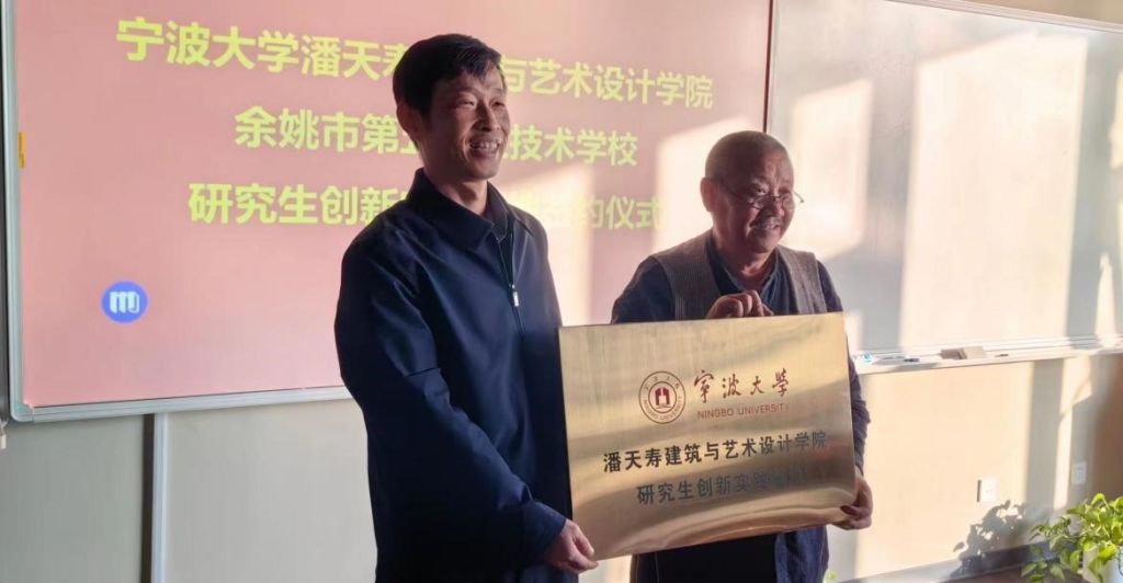 宁波市职成教教研室办公室主任戴潜挺介绍了当前美术教育实践的现状,指出此次双校通力合作是促进“五育并举”的重要实践,期望两校能资源共享,实现共同发展。在参会领导及全体美术系研究生的见证下,陈建设校长与邹湘平老师作为双方代表在签约协议上签字。