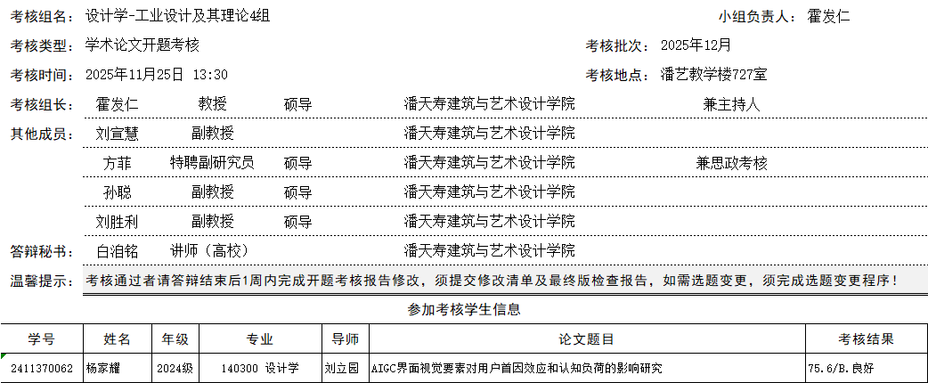 2025年全日制研究生学术论文开题考核结果公示(第二批)-更新中