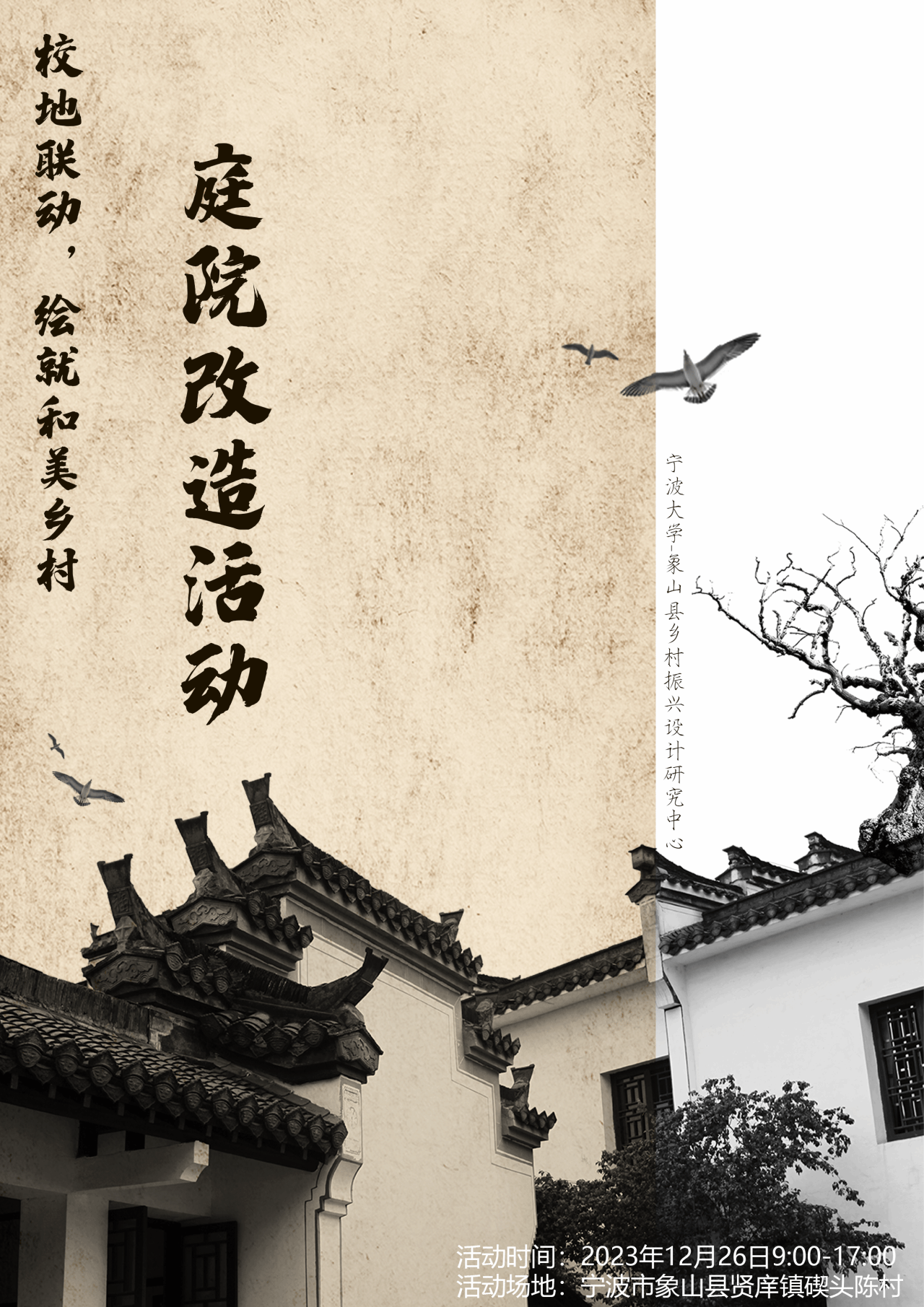 ——象山县乡村振兴设计研究中心举办美丽庭院改造活动,该研究中心旨在推动校地联动以响应乡村振兴政策,达到艺术赋能乡村的目的。