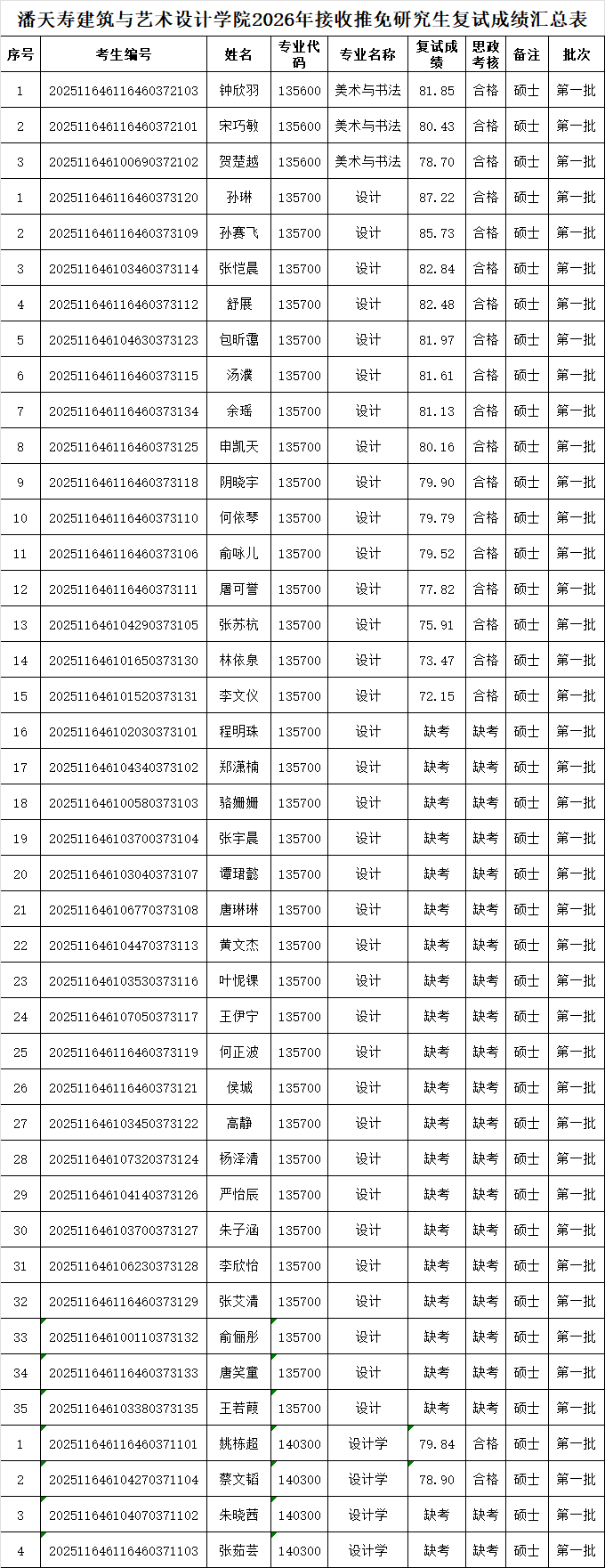 电影天堂 2026年接收推免研究生复试成绩汇总表(第一批)