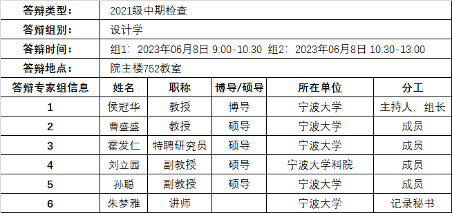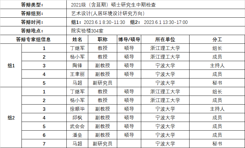中期检查考核暂定集中在6月中上旬,各考核组须提前一周提交中期检查安排表,以便校级备案及校级中检抽查安排。要求每组参加考核的学生数不得超于8人,中期检查小组每组专家至少3人(含组长1名),记录员1名,答辩记录须记录员及答辩者签名。