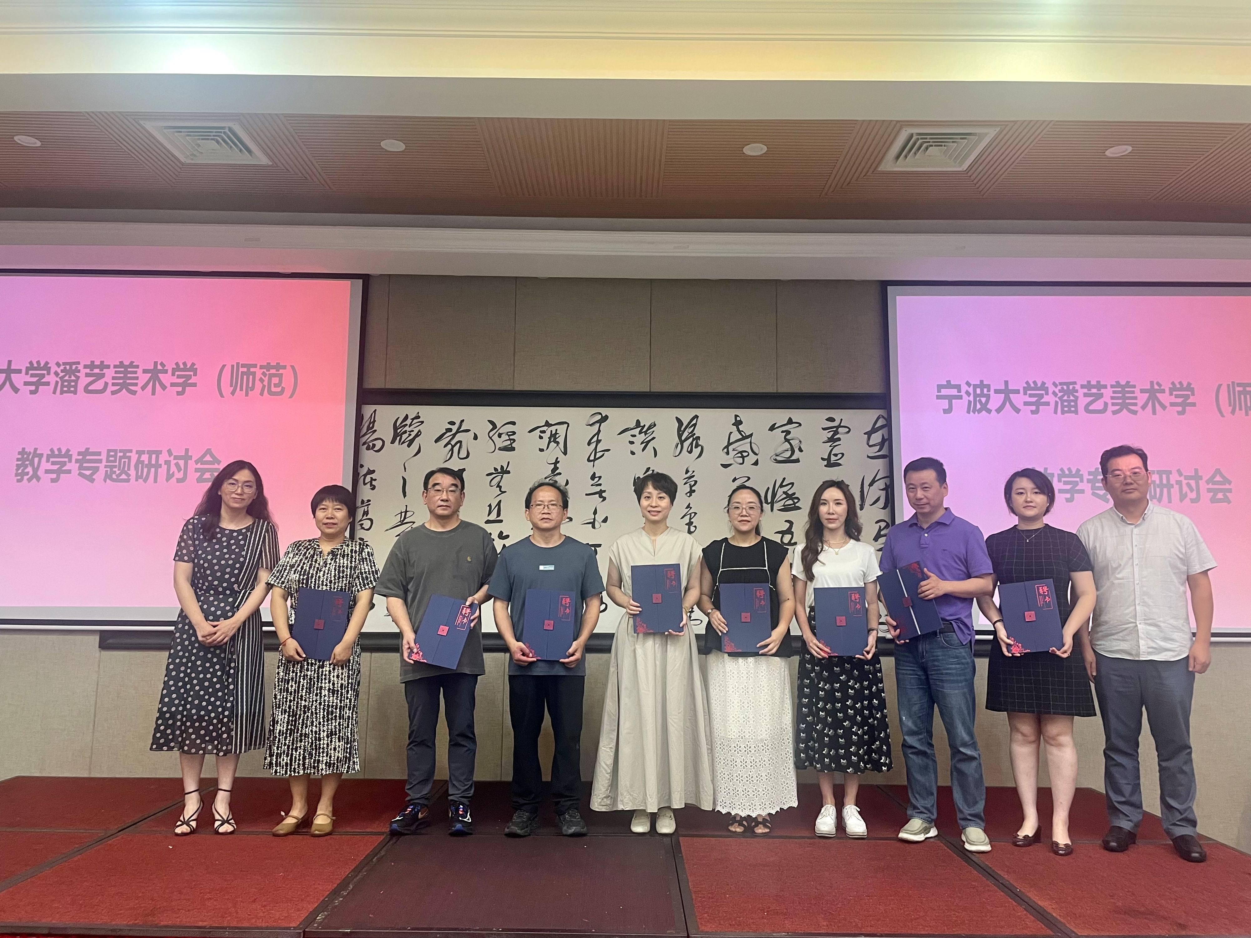 的办学理念与师范认证的推进工作的情况,并对到场的嘉宾表示了欢迎和感谢,陈晟主任介绍了参会嘉宾和院系参与人员,宣读了美术系校外导师名单。聘任仪式环节,周艳副院长与陈晟主任向到场嘉宾颁发了聘书。